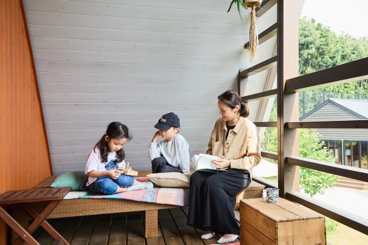 受付で雑誌や絵本を選んだ後は、好きな場所でページを開いてゆったり。その日の天気やその時の気分によって過ごす場所を見つけてみてください。